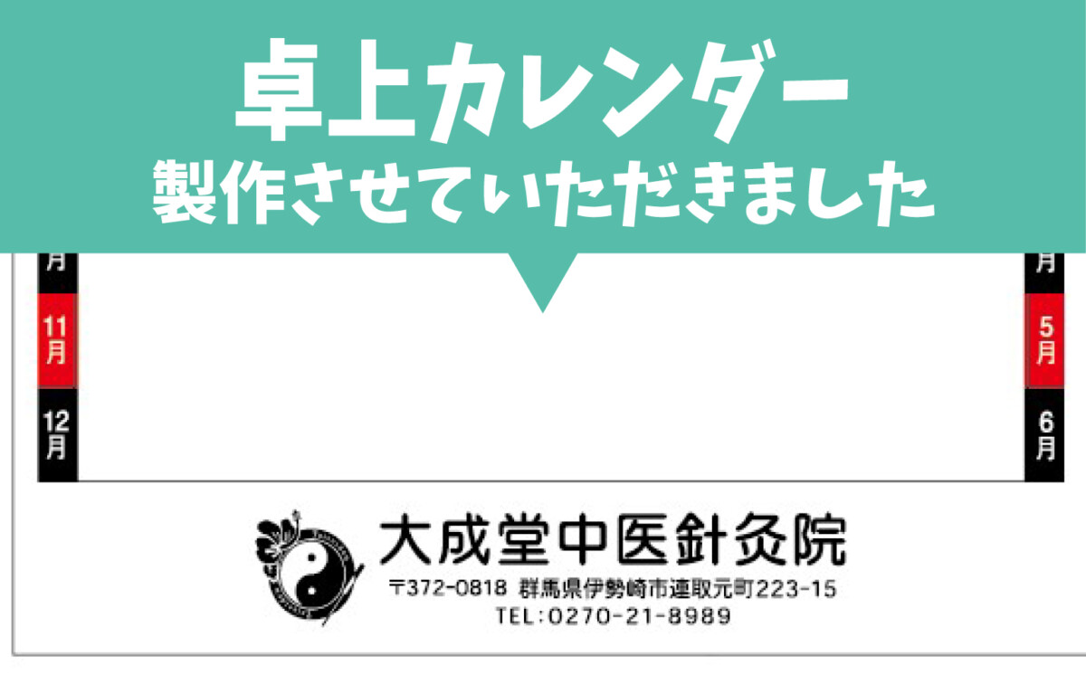毎年年末に恒例で卓上のカレンダーを患者さんに渡しています。以前は他の会社にお願いしていましたが、今の卓上カレンダーのデザインの患者さんウケがよく、また今年ももらえて嬉しいという声を聞くことがあります。壁掛けのカレンダーはもらう機会が多く、ともすると処分に困ることさえありますが、卓上カレンダーは重宝されるアイテムだと思います。